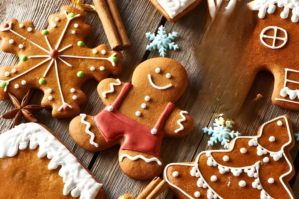 - Galletas de jengibre y chocolate: son unas galletas crujientes y aromáticas que se preparan mezclando harina, mantequilla, azúcar moreno, huevo, jengibre en polvo, canela, clavo molido, bicarbonato de sodio y una pizca de sal. La masa se forma en pequeñas bolitas que se hornean hasta dorarse. Para un toque especial, se pueden cubrir con chocolate derretido y dejar enfriar antes de servir.