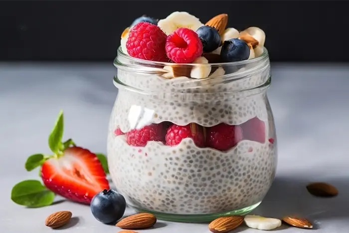 - Combinar las semillas de chía con leche vegetal y fruta para hacer un delicioso pudding de chía que se puede tomar como desayuno o postre.