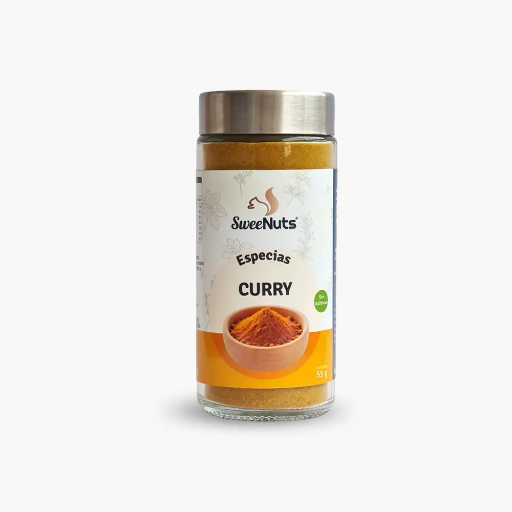 Aromática mezcla de especias de origen indio con su característico color amarillo-dorado. Combina cúrcuma, comino, cilantro, jengibre y otras especias en un equilibrio perfecto que ofrece un sabor complejo, cálido y ligeramente picante.