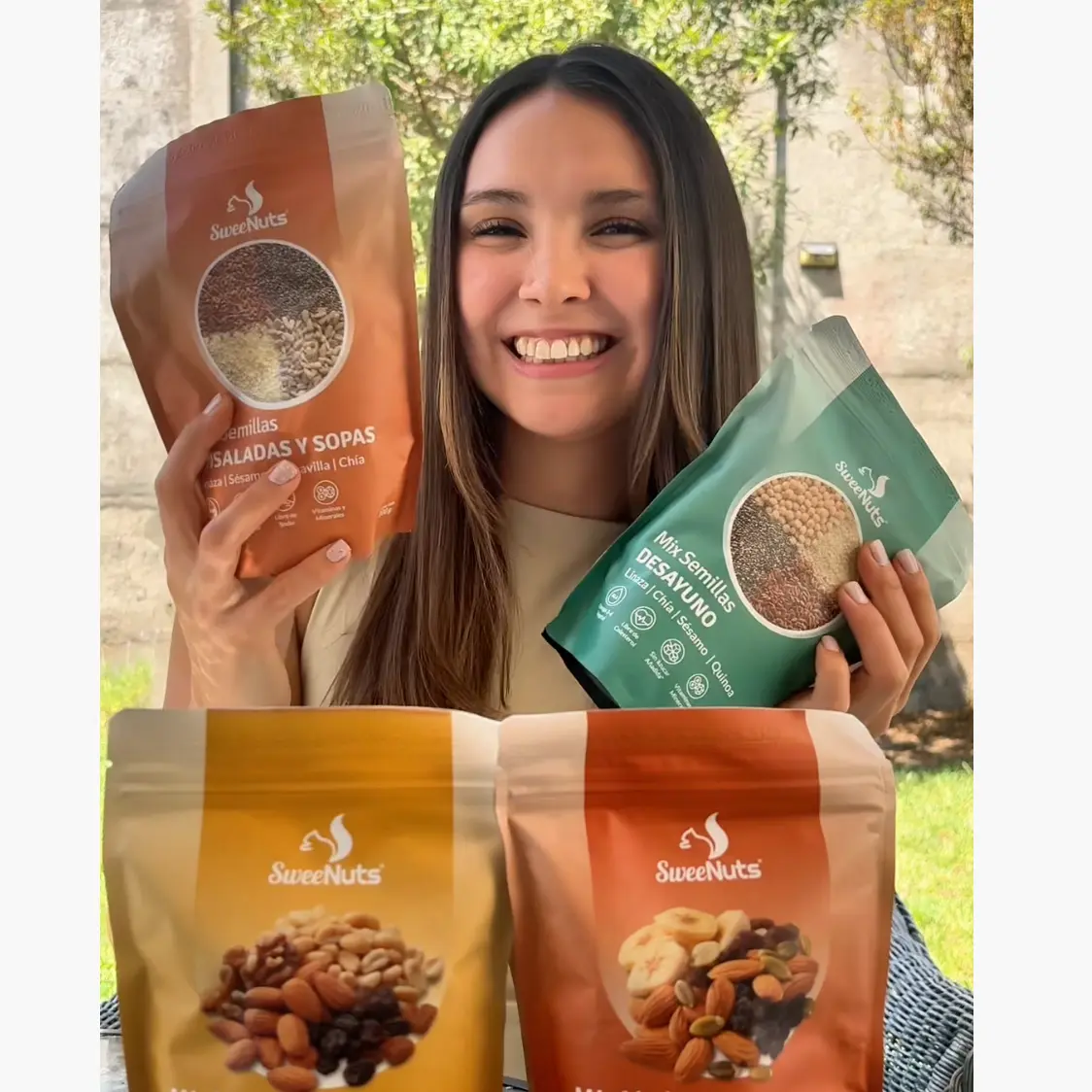 Sweenuts es una marca chilena comprometida con ofrecer productos naturales y accesorios diseñados con un enfoque en la calidad y el cuidado en cada detalle. Nuestras mezclas de frutos secos y semillas destacan por su sabor único y frescura, preservadas gracias a empaques de primer nivel que aseguran la máxima protección.