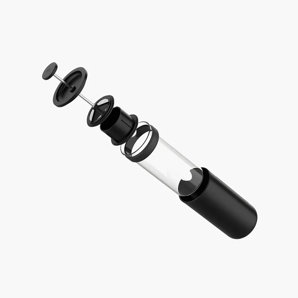 - Materiales de Calidad: Vaso de vidrio de borosilicato y filtro de acero inoxidable.
