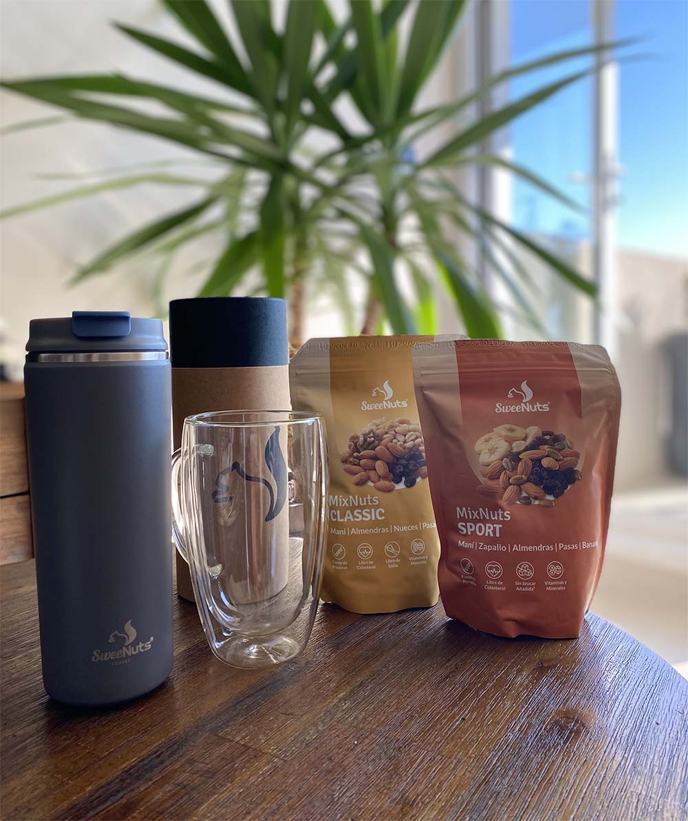 Sweenuts es una marca chilena comprometida con ofrecer productos naturales y accesorios diseñados con un enfoque en la calidad y el cuidado en cada detalle. Nuestras mezclas de frutos secos y semillas destacan por su sabor único y frescura, preservadas gracias a empaques de primer nivel que aseguran la máxima protección.