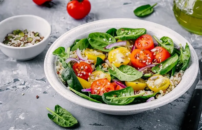 Ensalada de quinoa y semillas de maravilla: Esta ensalada es muy nutritiva y refrescante, ideal para los días calurosos. Solo necesitas cocer 200 gramos de quinoa en agua con sal siguiendo las instrucciones del paquete. Luego, escurre la quinoa y déjala enfriar. En un bol grande, mezcla la quinoa con 100 gramos de semillas de maravilla tostadas, 200 gramos de tomates cherry cortados por la mitad, un pepino picado, un puñado de hojas de espinaca, el zumo de un limón, cuatro cucharadas de aceite de oliva, sal y pimienta al gusto. Remueve bien y sirve fría o templada.