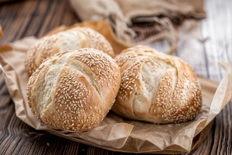 - Pan de Sésamo: Las semillas de sésamo se pueden incorporar en la masa de pan o espolvorear sobre la superficie antes de hornear. Son comunes en panes y bollos, añadiendo sabor, textura crujiente y un atractivo visual.
