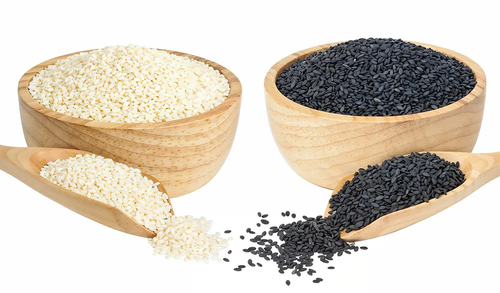 El sésamo blanco y el sésamo negro, aunque provienen de la misma planta, tienen diferencias y similitudes significativas en términos de sabor, apariencia y valor nutricional. Ambos tipos de sésamo son ricos en nutrientes esenciales como proteínas, grasas saludables y fibra, y comparten beneficios para la salud como el fortalecimiento de los huesos y la mejora de la salud cardiovascular. Sin embargo, el sésamo negro tiene un sabor más intenso y ligeramente amargo en comparación con el sabor suave y neutral del sésamo blanco. Además, el sésamo negro contiene niveles más altos de antioxidantes y ciertos minerales, como el hierro y el calcio, lo que le otorga un perfil nutricional más robusto. Visualmente, las semillas de sésamo negro son más oscuras y tienen una cáscara más dura, lo que las hace más distintivas en platos culinarios. Mientras que el sésamo blanco es versátil y se usa ampliamente en diversas preparaciones culinarias, el sésamo negro es apreciado por sus beneficios adicionales para la salud y su sabor único.