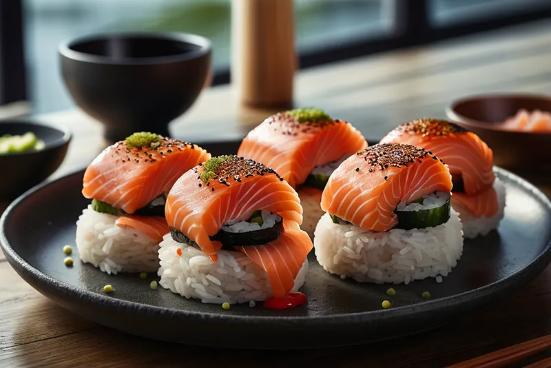 - Sushi con Sésamo: En la cocina japonesa, las semillas de sésamo se utilizan en los rollos de sushi para agregar un toque crujiente y sabor. Pueden espolvorearse sobre el sushi o mezclarse con otros ingredientes, complementando el pescado y las verduras.